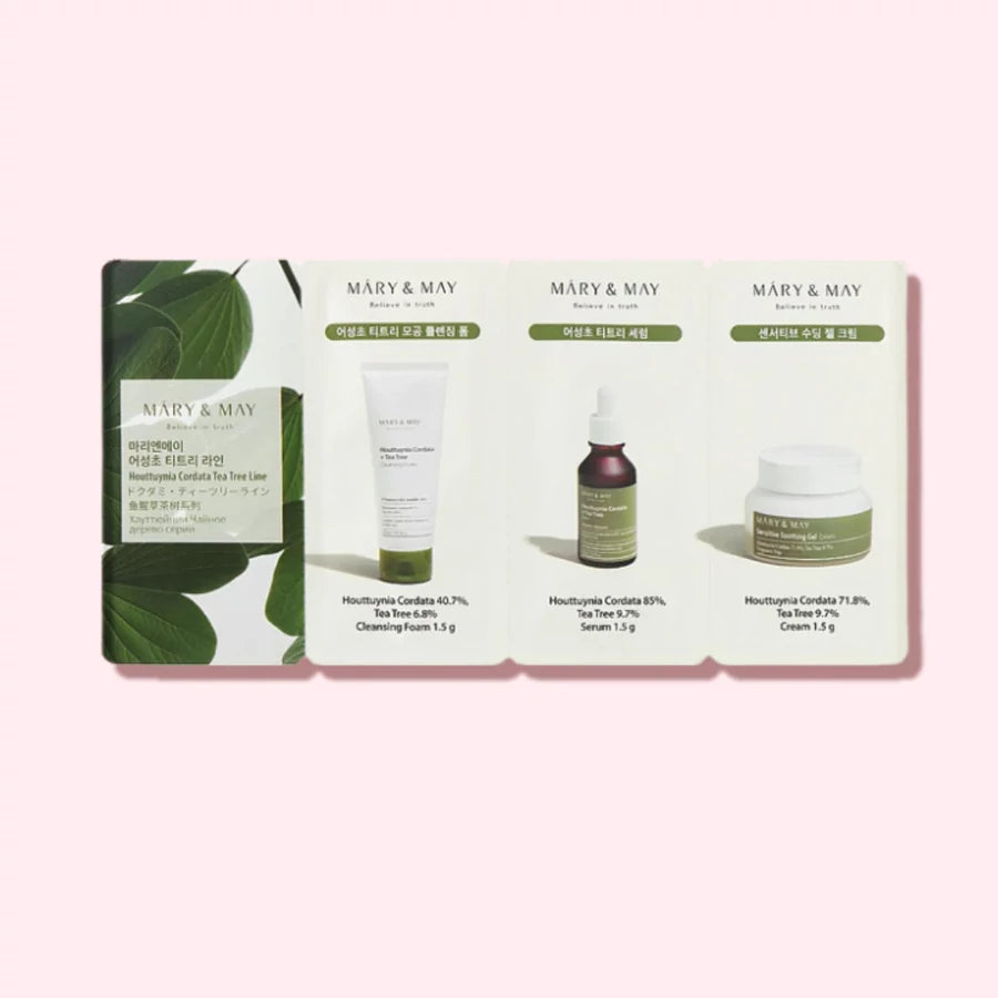 تتوفر مجموعة MARY & MAY الأساسية بثلاثة أنواع لمعالجة مشاكل البشرة المختلفة. تتضمن المجموعة الأولى، المُخصصة لتفتيح البشرة، أكياسًا من غسول الكولاجين الأبيض الرغوي، وسيروم النياسيناميد مع عشبة الكينا، وكريم العين بحمض الترانيكساميك والجلوتاثيون لاستعادة نضارة بشرتكِ ومرونتها. أما المجموعة الثانية، المُخصصة للكولاجين، فتتضمن غسول الكولاجين الأبيض الرغوي، وسيروم الكولاجين البحري، ولوشن الكولاجين المُعزز لتحفيز إنتاج الكولاجين، وشد البشرة وترطيبها. بينما تتضمن المجموعة الثالثة، المُخصصة لشجرة الشاي هوتوينيا، غسول هوتوينيا كورداتا الرغوي، وسيروم هوتوينيا كورداتا مع مستخلص شجرة الشاي، وكريم الجل المُلطف للبشرة الحساسة، لتوفير فوائد مُلطفة ومضادة للالتهابات.