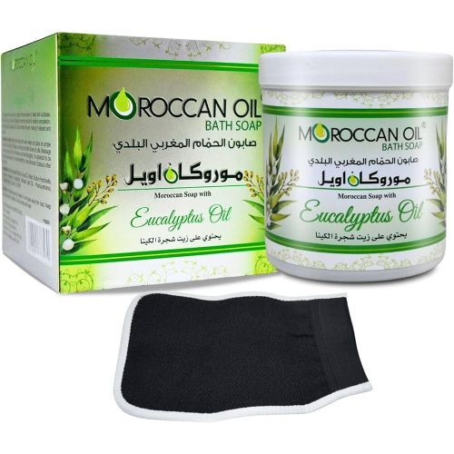 Moroccan Oil Bath Soap with Eucalyptus is a traditional, natural soap designed to deeply cleanse, exfoliate, and hydrate the skin. Enriched with olive oil and eucalyptus, it removes dead skin cells, softens the body, and provides a refreshing, spa-like experience, often sold with a traditional loofah.