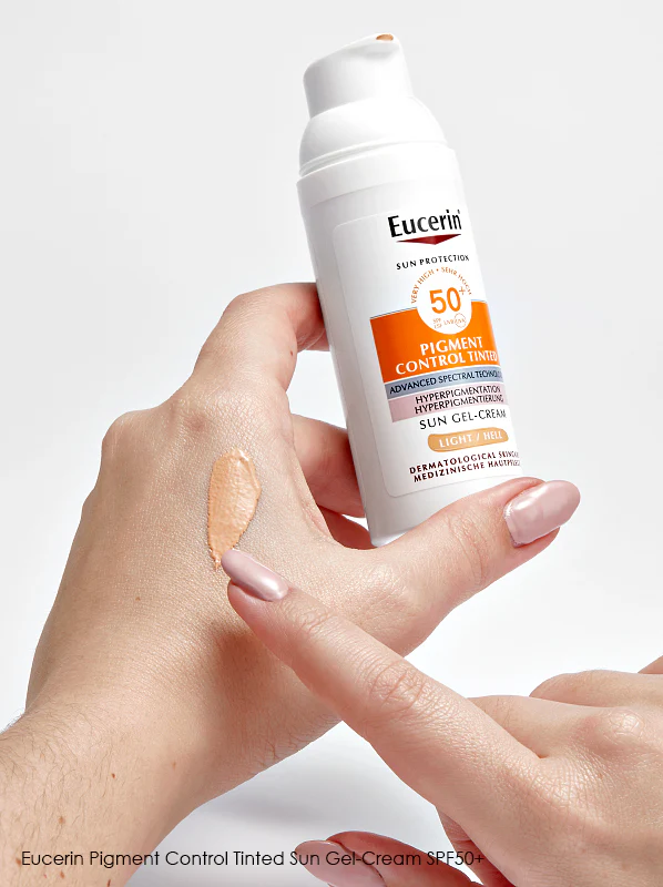 Apply a generous amount of Eucerin Sun Pigment Control Sun Tinted Gel-Cream SPF50+ Light 50ml to the face in the morning routine or at least 20 minutes before sun exposure. Reapply frequently every two hours or after swimming, sweating, or towel drying.