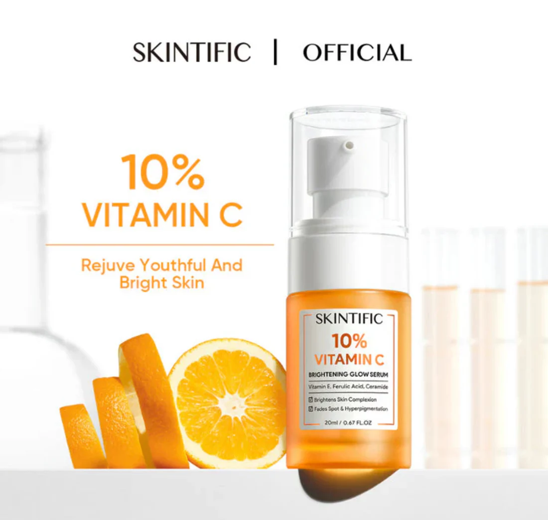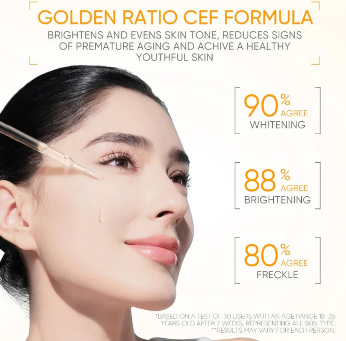 Vitamin C, which can make the skin glow, brighten, and fade dark and black spots. With Triple Antioxidants, preventing skin from dullness